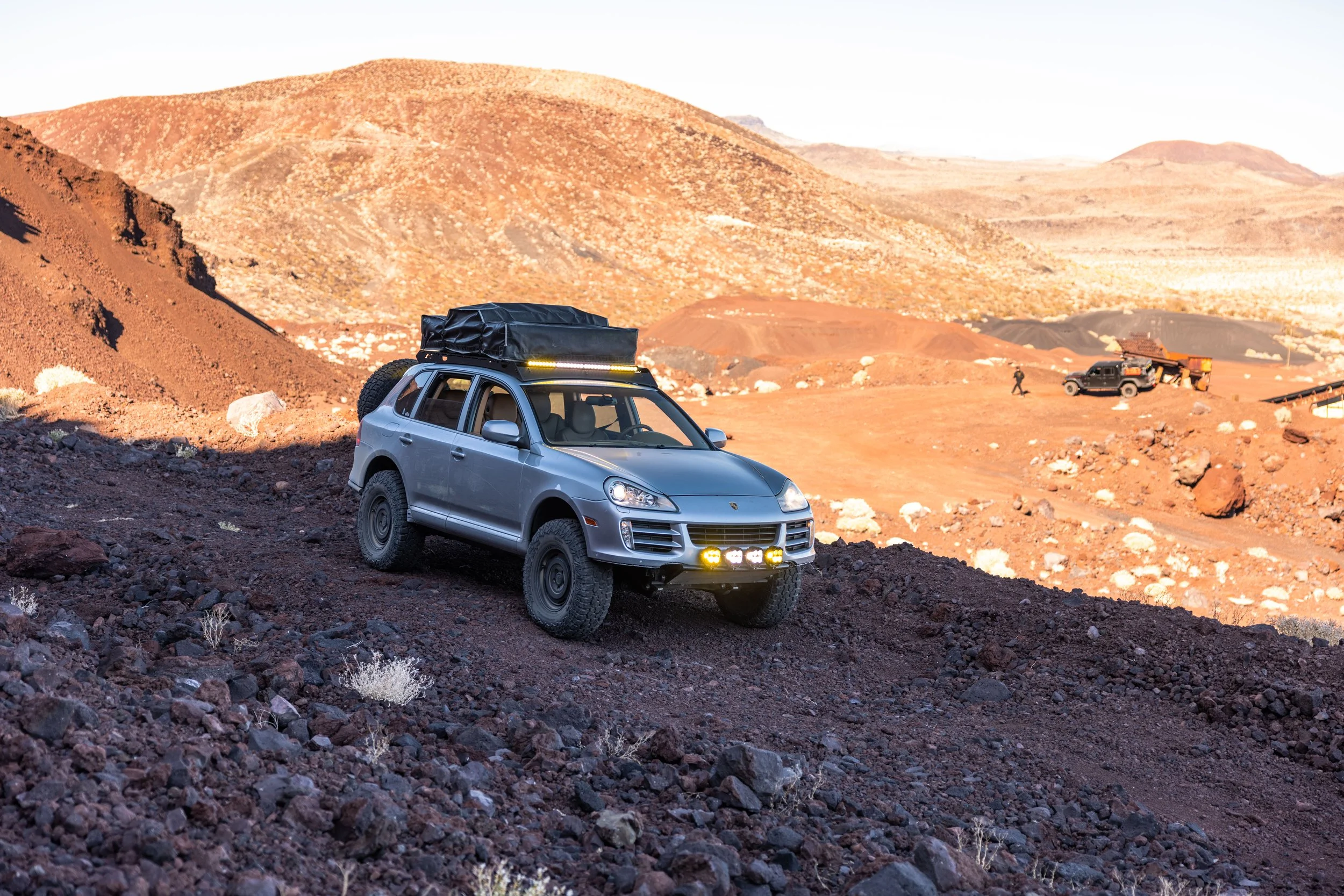 The 955/957 platform was slept on for far too long these Cayennes are a force to be reckoned with on and off road. This one is well spec’d and purpose built. 34” tires, Fifteen52 wheels, custom bumpers, and decorated in Baja Designs lights this 957S is no joke